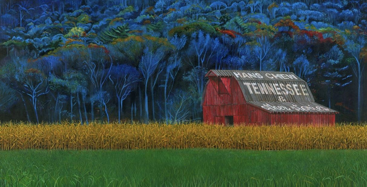 2014, Illustration of Hans Chew at the helm of a hotrod grand piano, peeling out on the road, inspired by Ed “Big Daddy” Roth